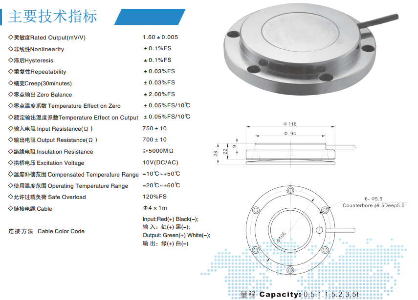 經(jīng)過(guò)良好的防潮密封,適應(yīng)惡劣的工作環(huán)境,是移動(dòng)式汽車衡的專用傳感器。