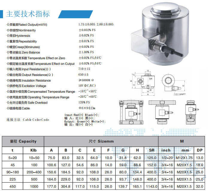 SYZ-01柱式稱重傳感器為全封密結(jié)構(gòu),采用氬弧焊接,防水、防塵能力達(dá)到GB4208規(guī)定的IP68等級(jí)要求。承載方式為上球頭壓式、動(dòng)態(tài)響應(yīng)快,防過(guò)載能力強(qiáng),安裝容易,使用方便。可用于制造電子汽車衡、動(dòng)態(tài)軌道衡、大噸位料斗秤等衡器。
