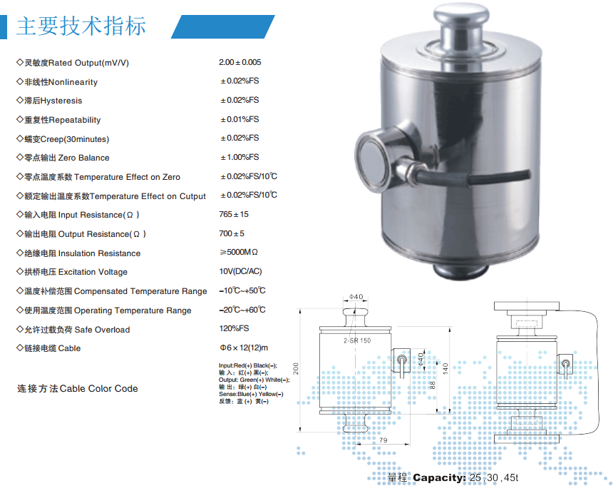 SYZ-03型鋼制柱式稱重傳感器為全密封雙球頭結(jié)構(gòu)。采用氬弧焊接。防水防塵能力達(dá)IP68等級(jí)要求。具有較好的自動(dòng)調(diào)心功能,承載方式為壓式,動(dòng)態(tài)響應(yīng)快,防過(guò)載能力強(qiáng),安裝容易,使用方便??捎糜谥圃祀娮悠嚭?、動(dòng)態(tài)軌道衡、大噸位料斗秤等衡器。