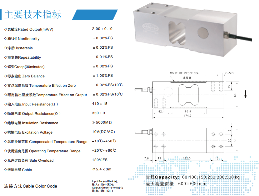 保證其在規(guī)定的受載平面內(nèi)各點(diǎn)輸出一致。可用于制作由單只傳感器構(gòu)成的各種形式電子臺(tái)秤。產(chǎn)品結(jié)構(gòu)形式簡單、使用方便。