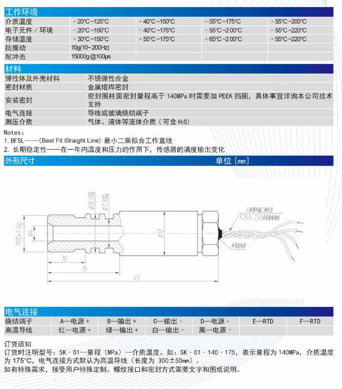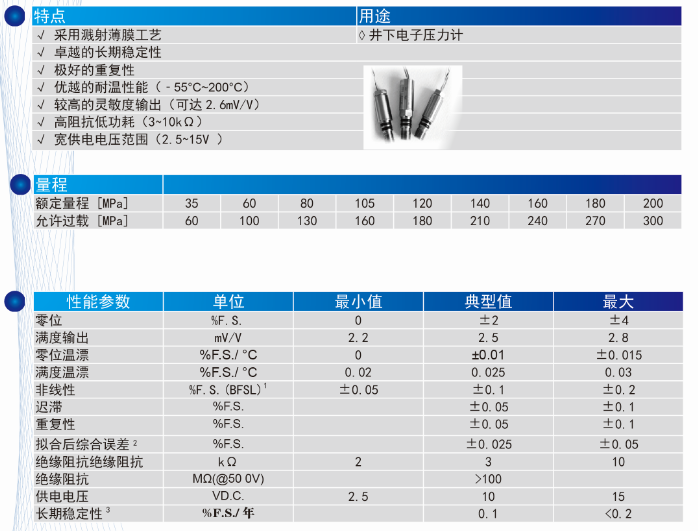 SK‐01型濺射薄膜式 井下壓力傳感器
