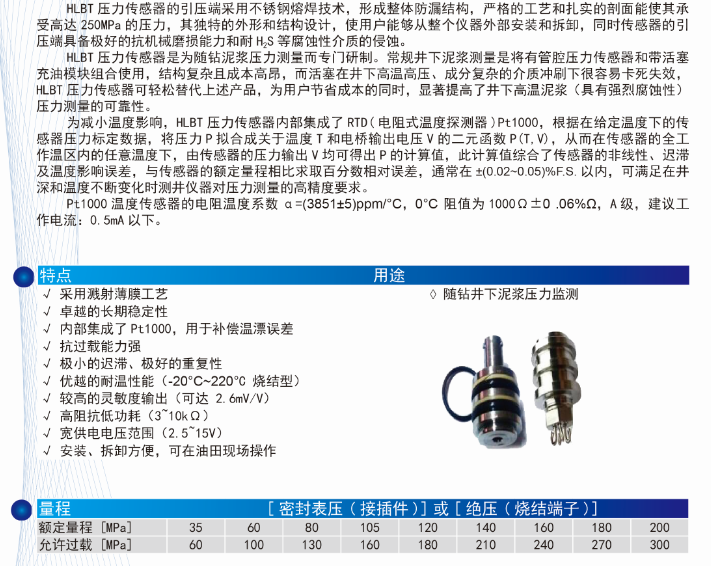 HLBT型濺射薄膜式井下泥漿壓力傳感器