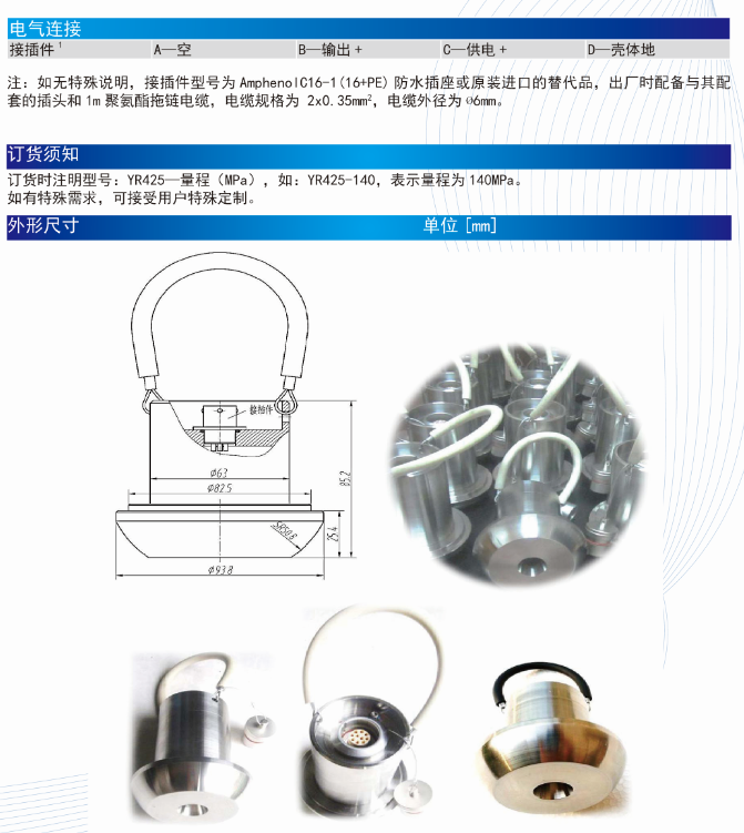 YR425變送器選用高強度、高彈性、耐腐蝕不銹鋼嗎,是為油田鉆井、固井、壓裂車等漿體壓力測量而專門設計的高可靠性、耐腐蝕、高長期穩(wěn)定性產(chǎn)品。
