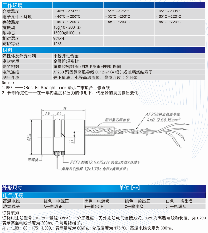 KLR8型濺射薄膜式井下高 溫小型壓力傳感器